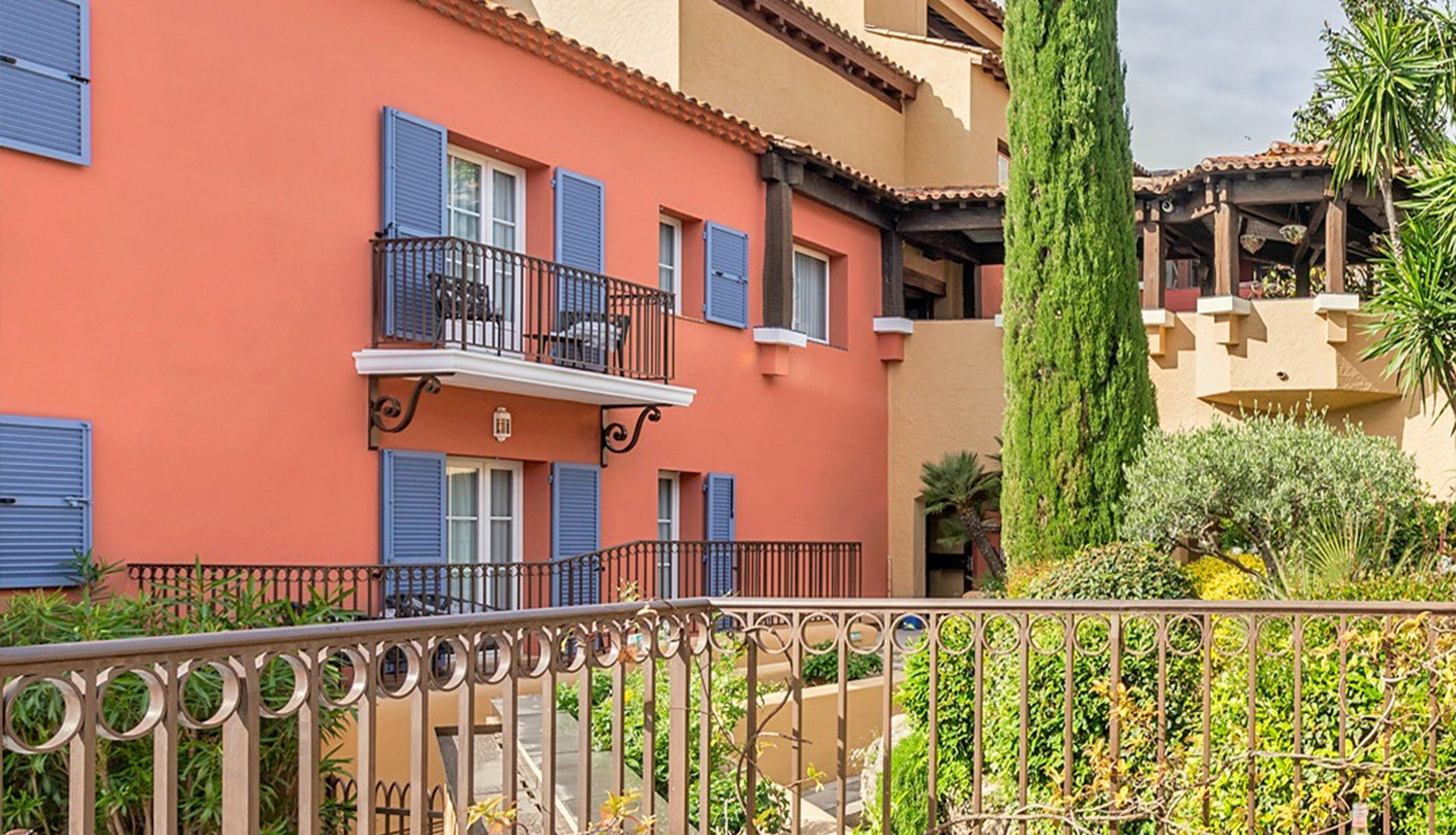 Rénovation et entretien des façades de l’Hôtel Byblos avec la reprise complète des peintures et des barreaudages extérieurs.