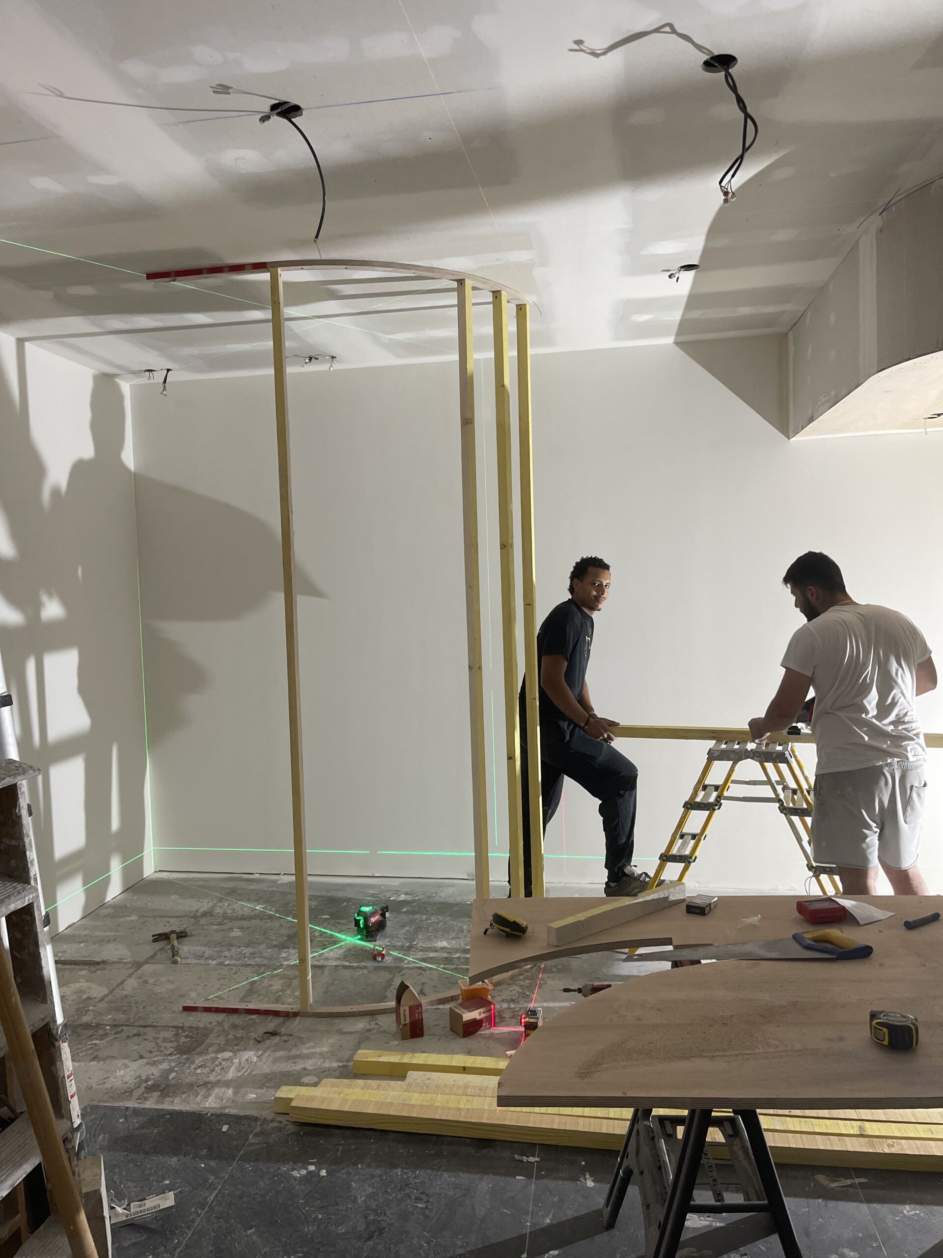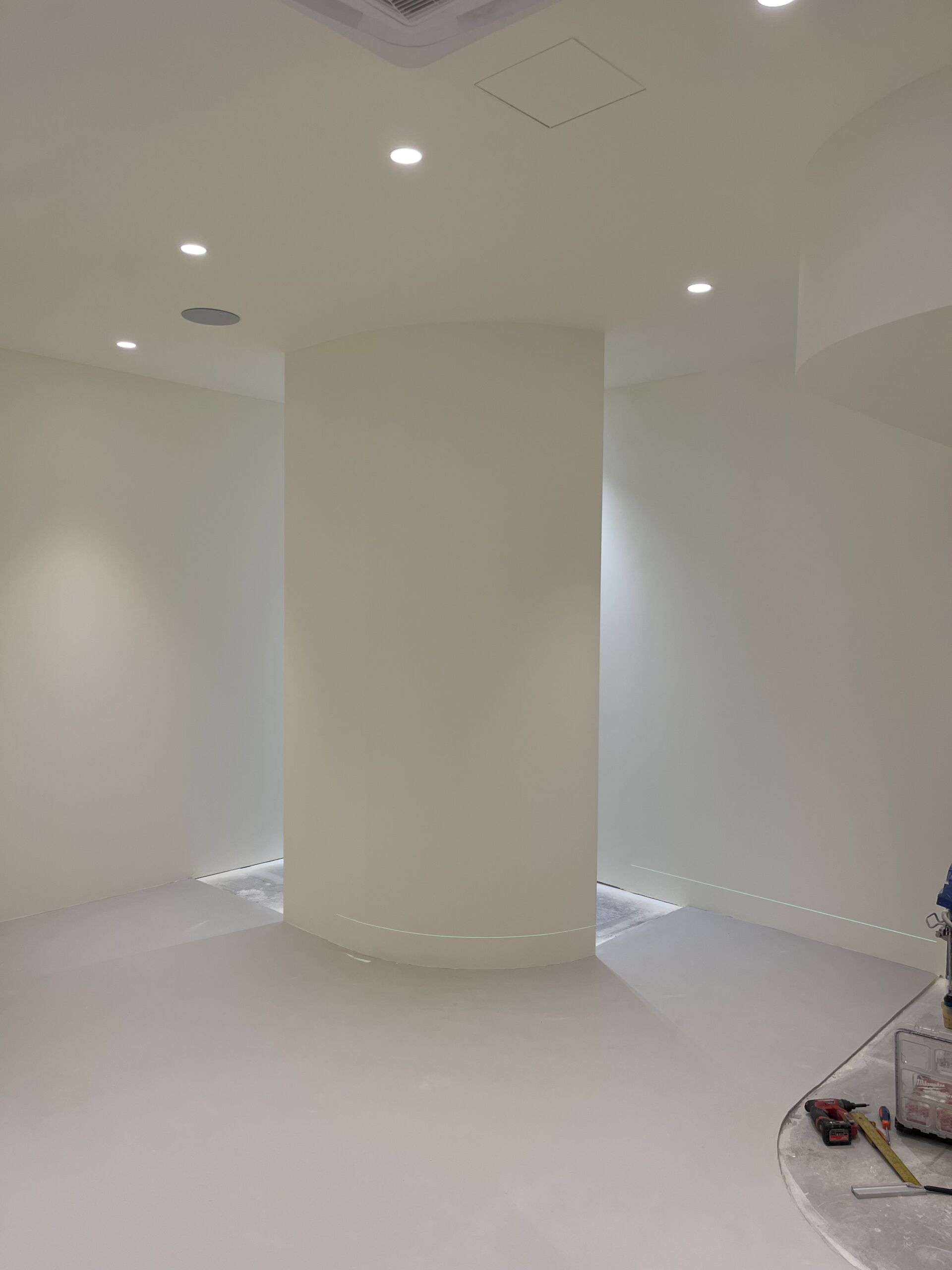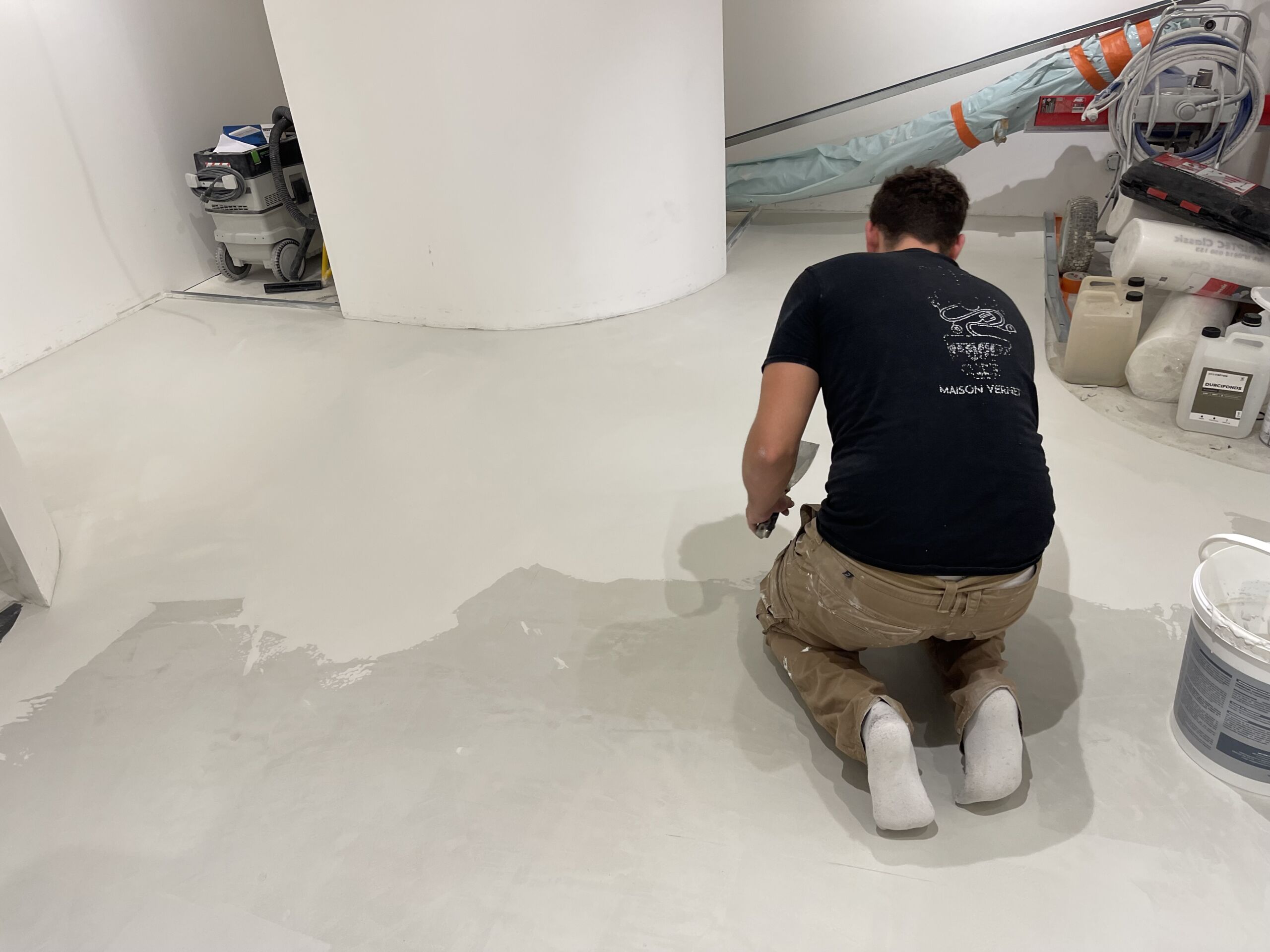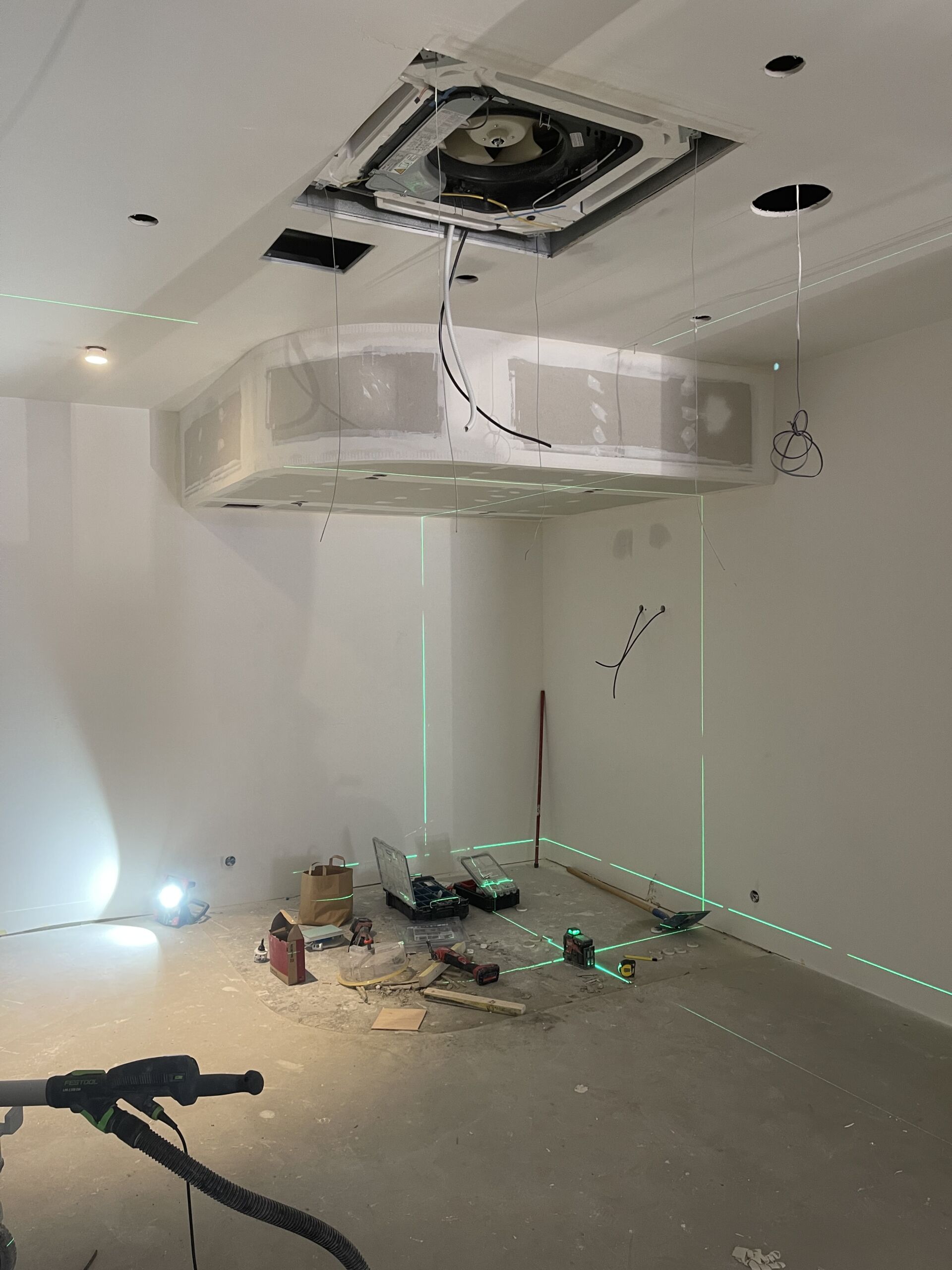 Création de faux plafonds et de cloisons en placo, peinture intégrale, application d’un béton ciré au sol, et refonte totale de l’électricité et de la climatisation gainable.